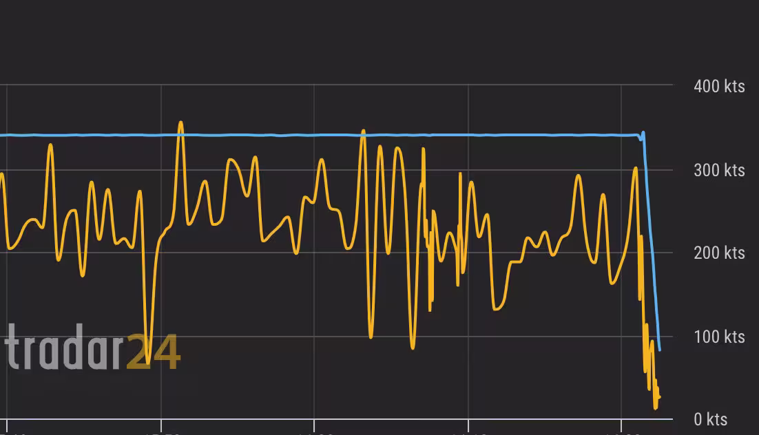 La velocita registrata da FR24 non sembra associabile ad un alto AoA.